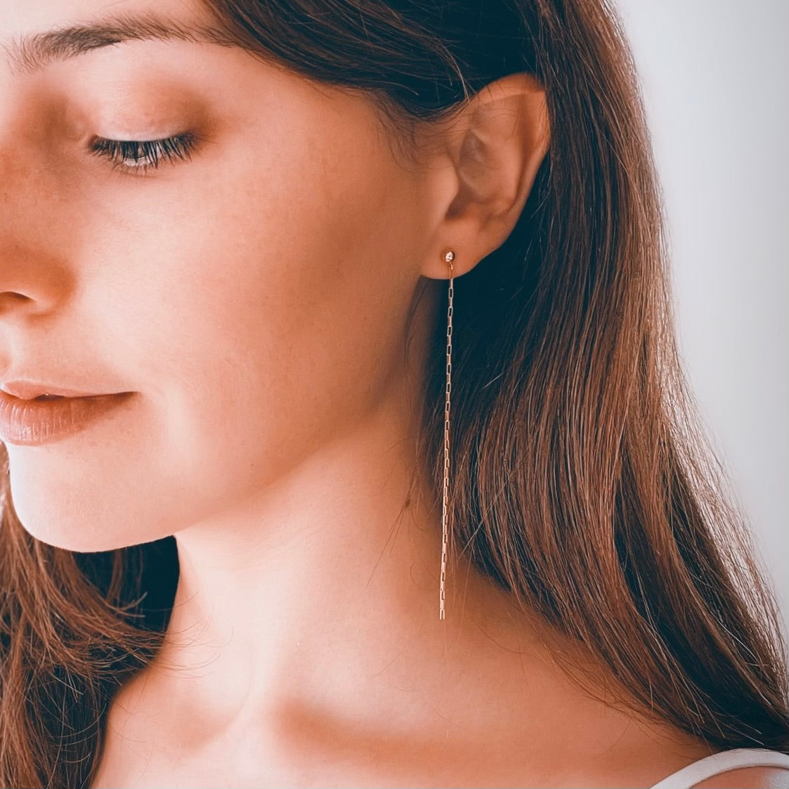 Subtle & minimal. Nothing pairs better with a white tee and your favorite jeans or your best LBD. These thin, long chain earrings will always make you feel extra special.